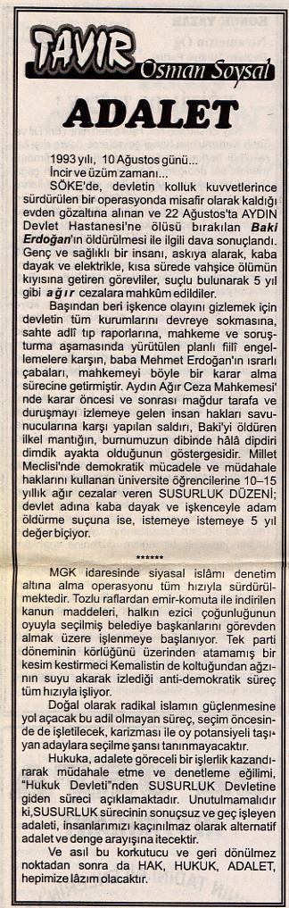 Adalet - 12 Mayıs 1998 Super User tarafından 30 Mart 2009 tarihinde yazıldı. Kategori: Kusadası Gözlem. Önceki Sonraki