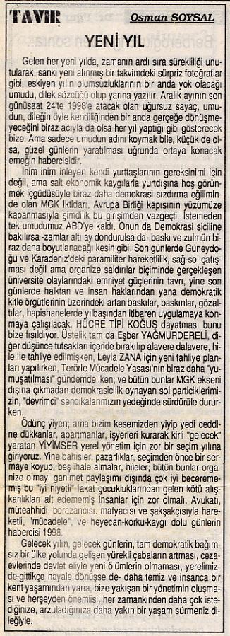 Yeni yıl - 13 Ocak 1998 Super User tarafından 30 Mart 2009 tarihinde yazıldı. Kategori: Kusadası Gözlem. Önceki Sonraki