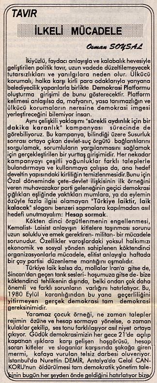 İlkeli Mücadele - 15 Mart 1997 Super User tarafından 30 Mart 2009 tarihinde yazıldı. Kategori: Kusadası Gözlem. Önceki Sonraki