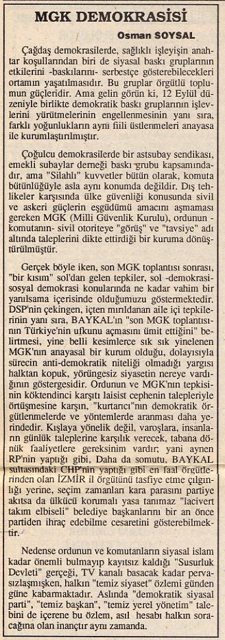 MGK Demokrasisi - 15 Mayıs 1997 Super User tarafından 30 Mart 2009 tarihinde yazıldı. Kategori: Kusadası Gözlem. Önceki Sonraki