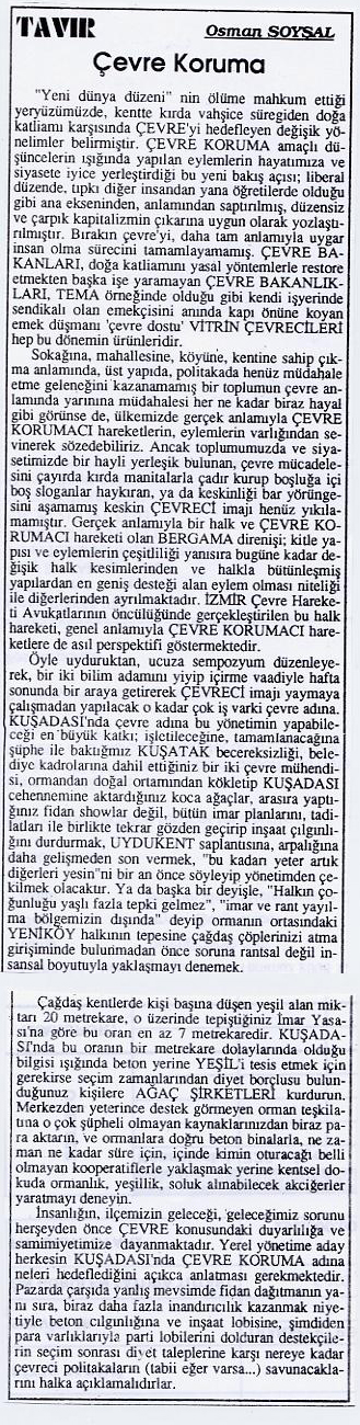 Çevre Koruma - 17 Kasım 1997 Super User tarafından 30 Mart 2009 tarihinde yazıldı. Kategori: Kusadası Gözlem. Önceki Sonraki