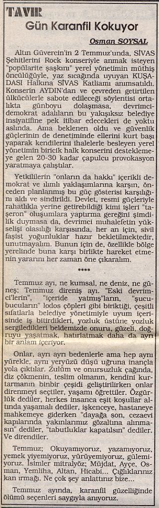 Gün karanfil kokuyor - 22 Temmuz 1997 Super User tarafından 30 Mart 2009 tarihinde yazıldı. Kategori: Kusadası Gözlem. Önceki Sonraki