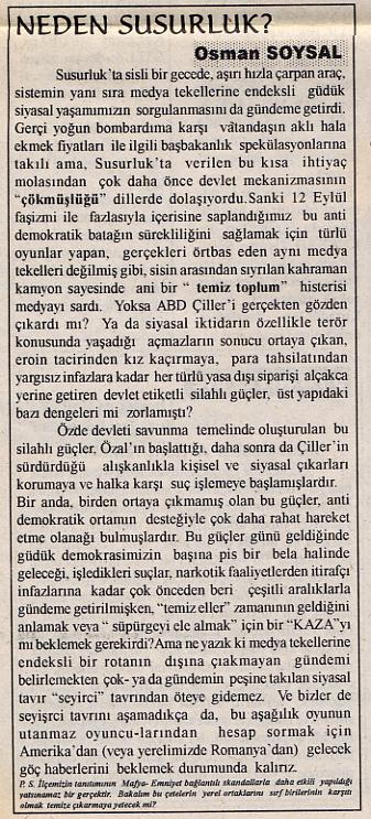Neden Susurluk? - 30 Kasım 1996 Super User tarafından 30 Mart 2009 tarihinde yazıldı. Kategori: Kusadası Gözlem. Önceki Sonraki