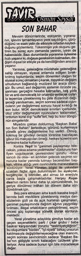 Sonbahar - 5 Nisan 1998 Super User tarafından 30 Mart 2009 tarihinde yazıldı. Kategori: Kusadası Gözlem. Önceki Sonraki