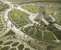 Merkez otobüs terminalinin yanında bulunan, kentin en büyük alanı olan Meydan-ı Azadi’nin göbeğinde yer alan Özgürlük Anıtı (Azadi Anıtı), 1971 yılında Pers İmparatorluğu’nun kuruluşunun 2500 ncü yıldönümünde Şah tarafından Shahyad Anıtı olarak yaptırılmış. Anıt yüzyüze bakan 2500 adet taş ile süslenmiş; orta katlarında bir İran Tarihi müzesi bulunmakta. Anıtın çevresindeki geniş düzlükte bulunan yeşil çimlere uzanan halka, alanın çeşitli noktalarında konuşlanmış bekçiler düdükleriyle hemen müdahale ediyorlar. Halbuki daha bundan bir hafta önce binlerce Tahran'lı seçimlere hile karıştırdığı iddiasıyla Ahmedinecad'a karşı Musavi'yi desteklemek üzere bu çimleri fazlasıyla çiğnediler.